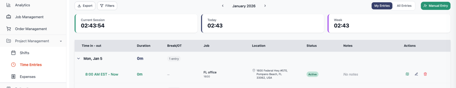 - Admin Oversight: View and edit all time entries and expenses with approval workflows